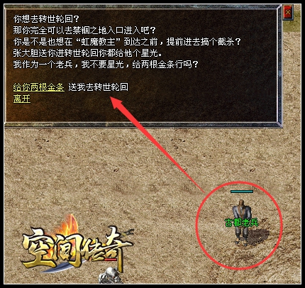 从“废弃古都”安全区的“古都老兵”NPC处也可以直接传送进“转世轮回”